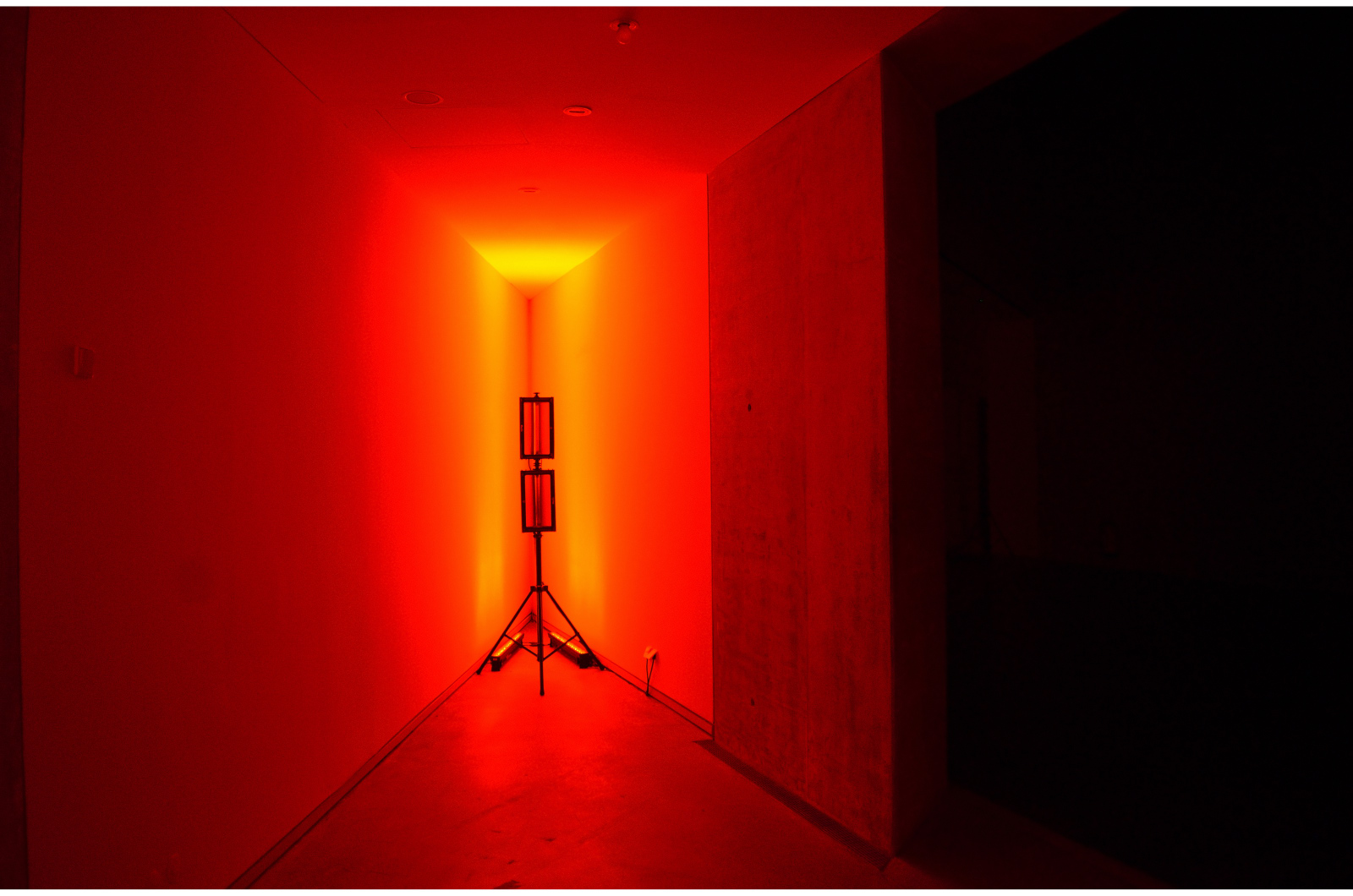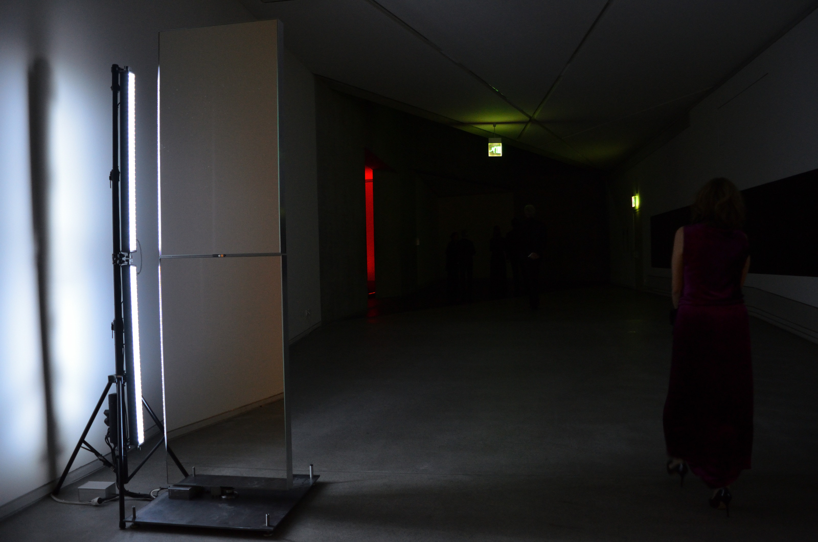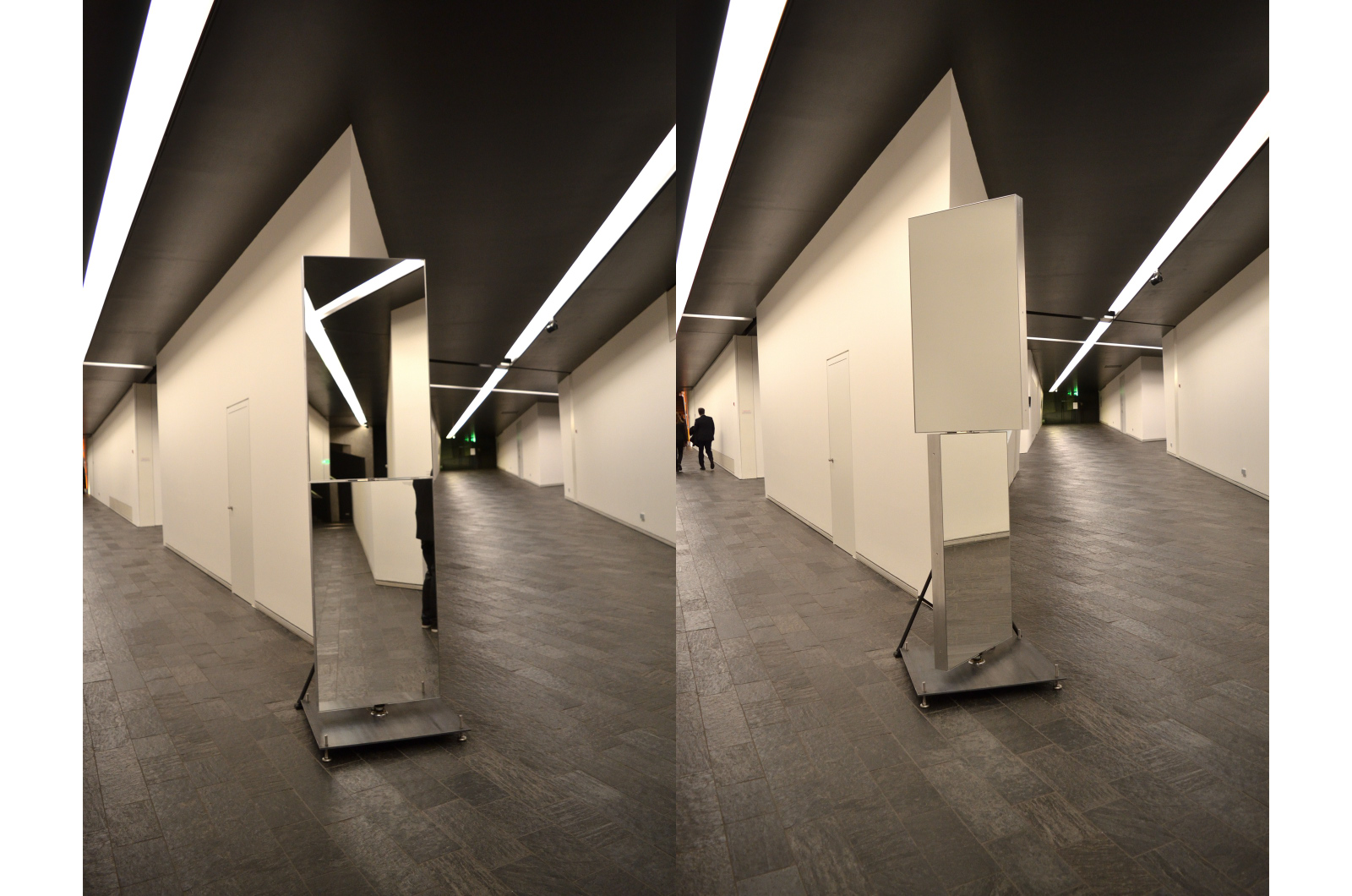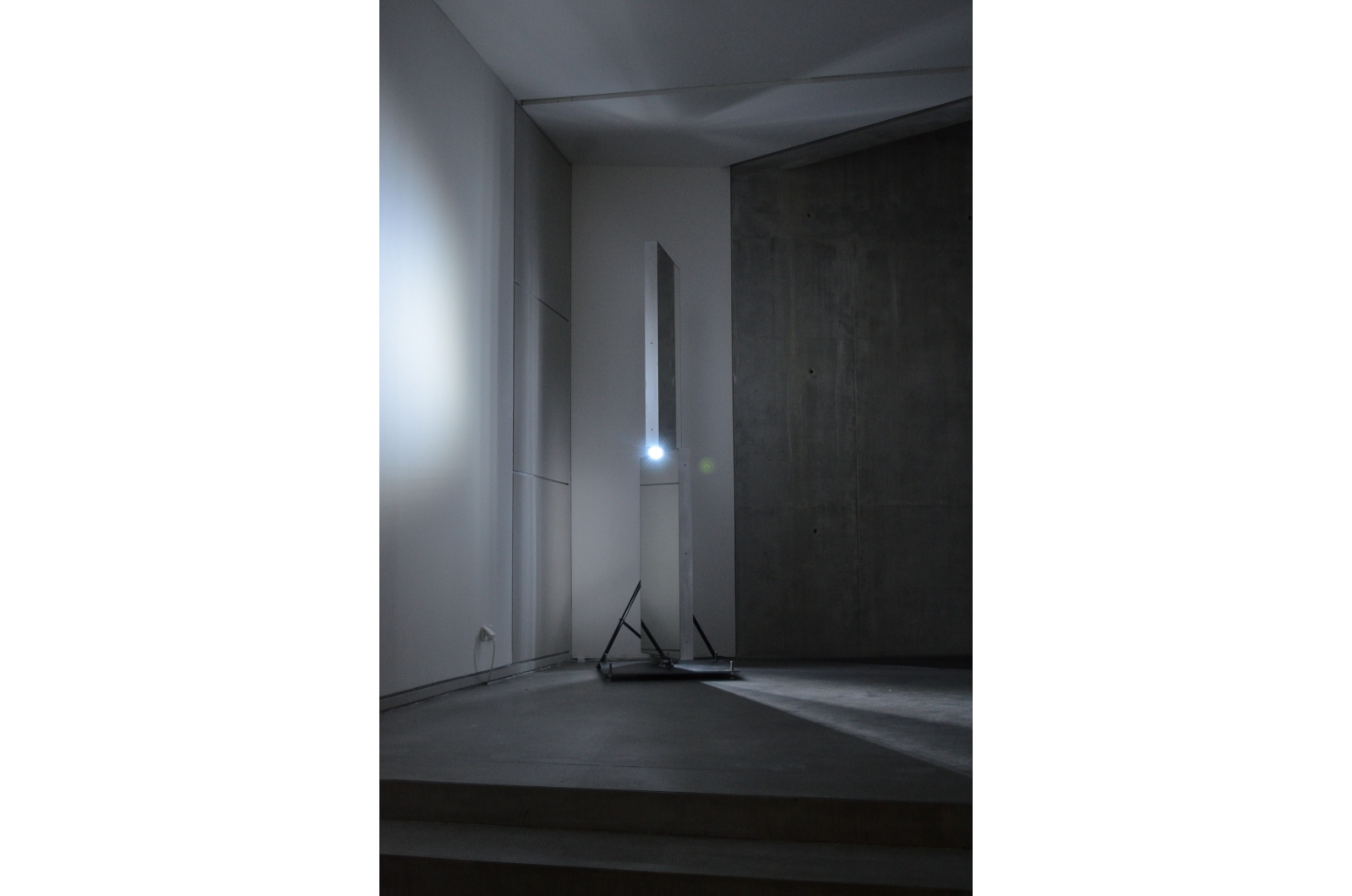 Drei 2-teilige, sich jeweils gegeneinander langsam drehende Spiegelelemente sowie eine mit den Spiegelelmente gekoppelte, zentrale Lichtinszenierung mit drei Stroboskop-Blitzen waren weitere Bestandteile der Installation.
