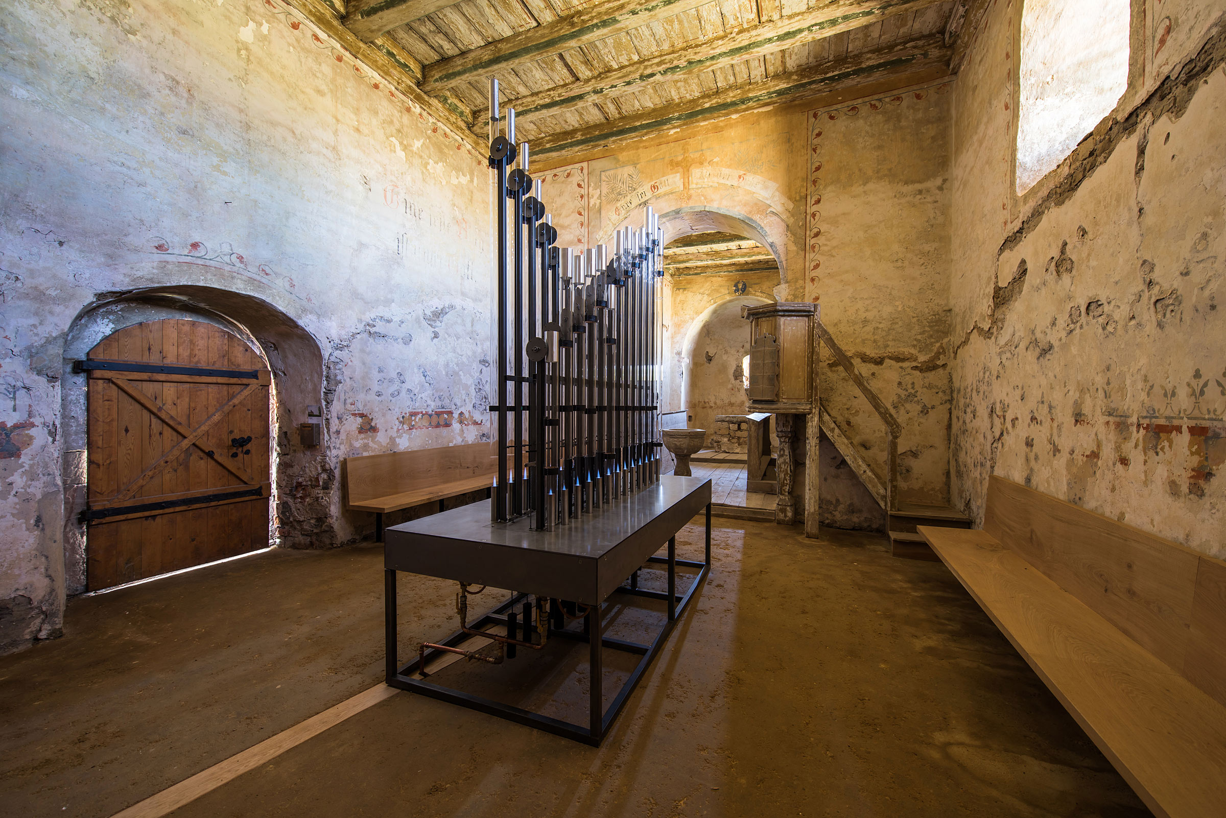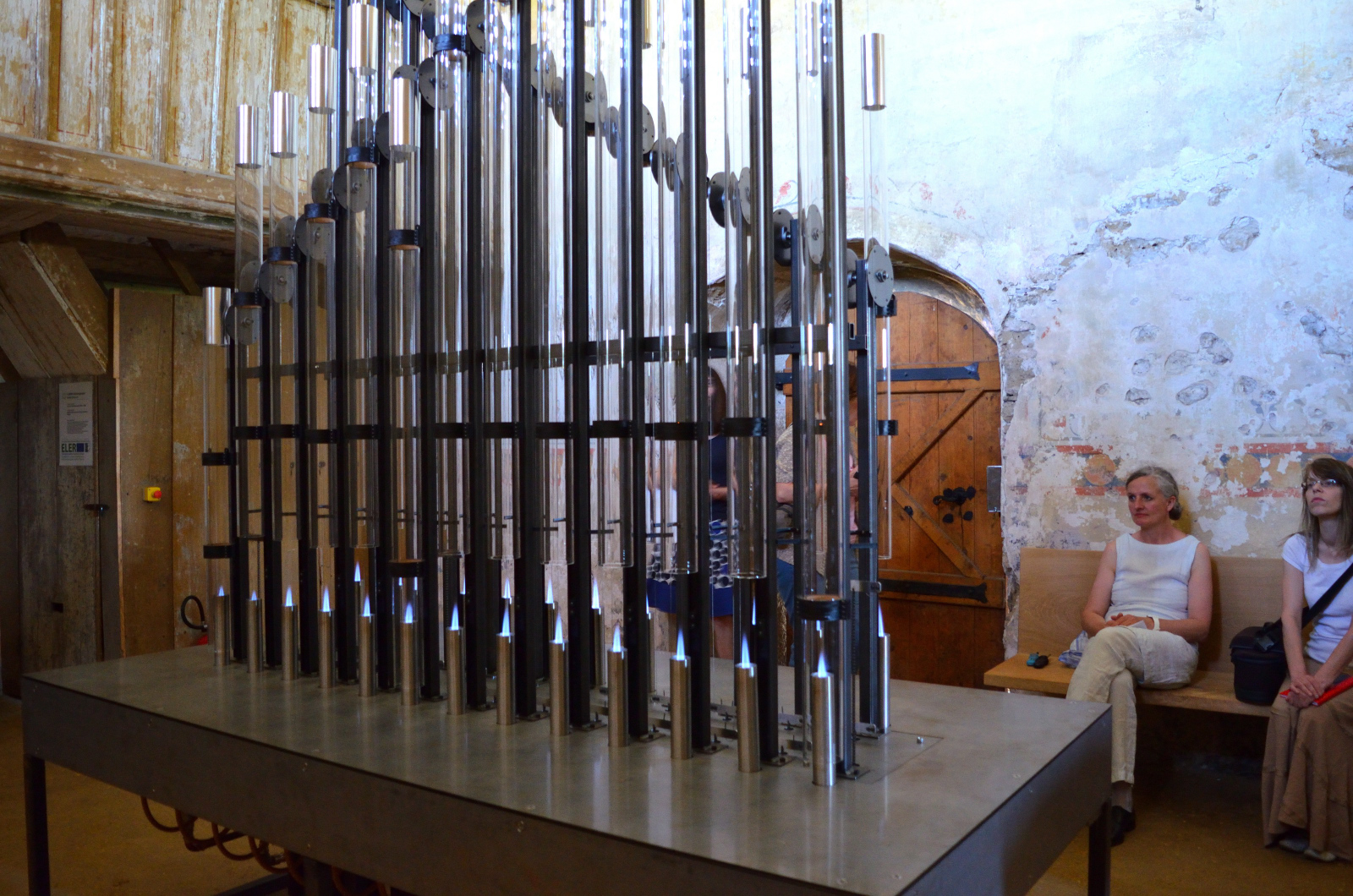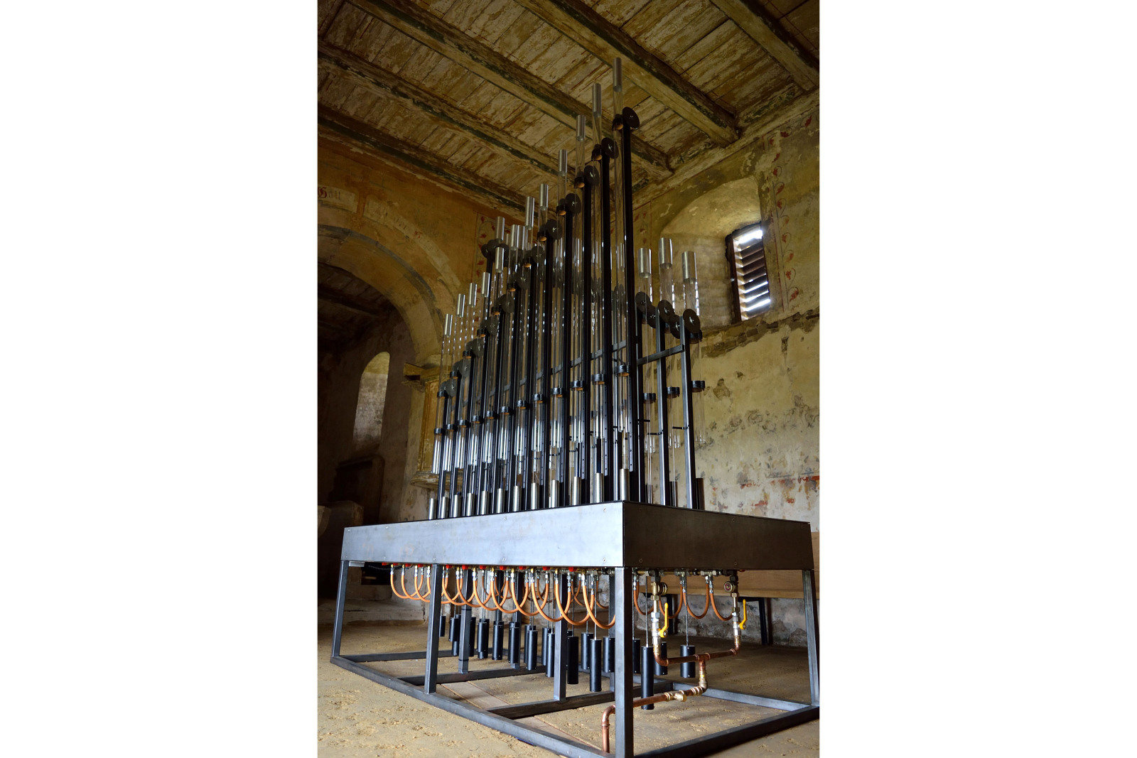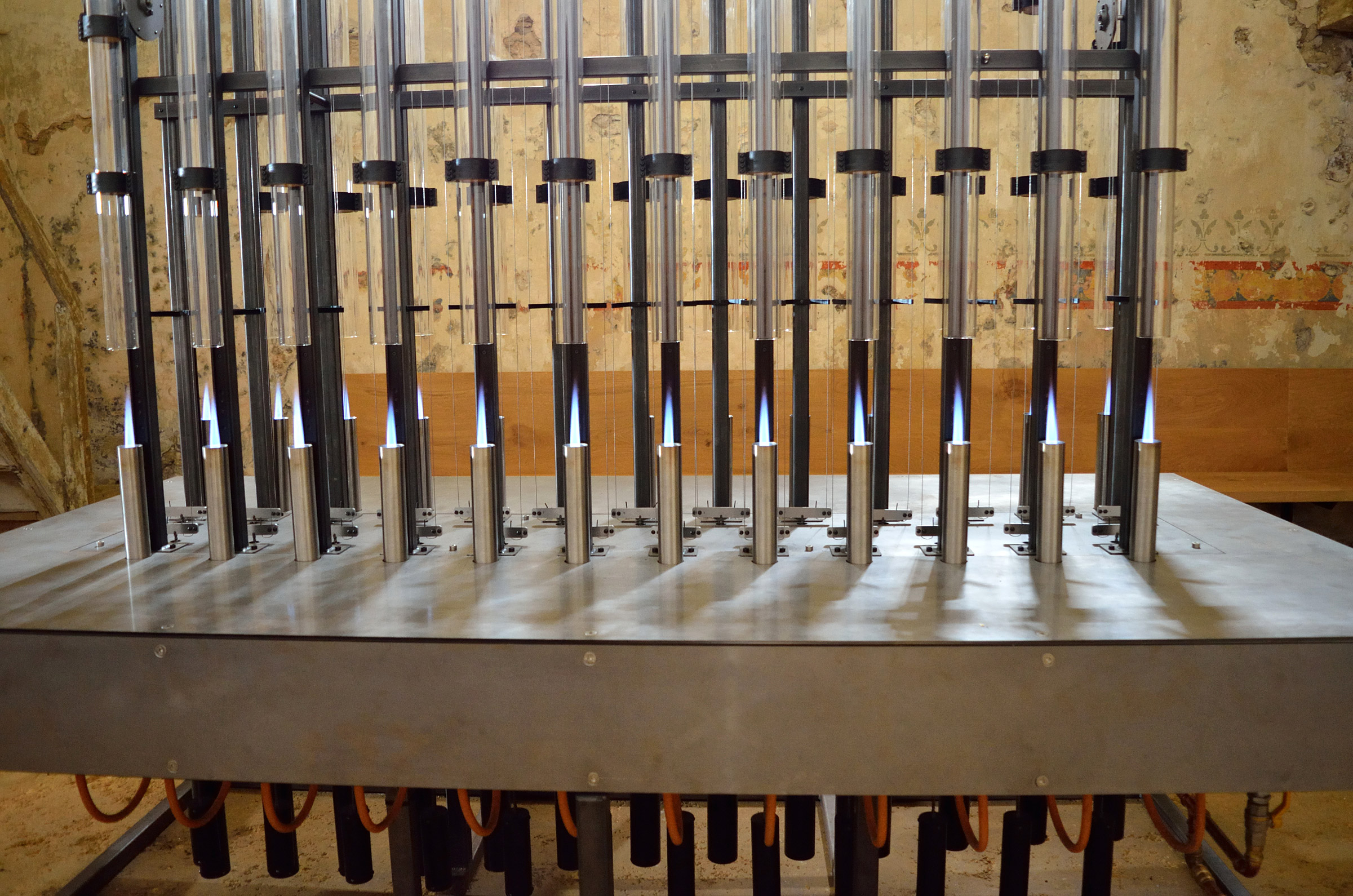 Für den Berliner Künstler Carsten Nicolai habe ich im Auftrag und in Kooperation mit Robert Feigel von ufficio d’arte eine mit Propangas betriebene Feuerorgel entwickelt und realisiert. Die Orgel ist bis mindestens Ende 2017 in der St.-Anna-Kapelle in Krobitz, Thüringen installiert.